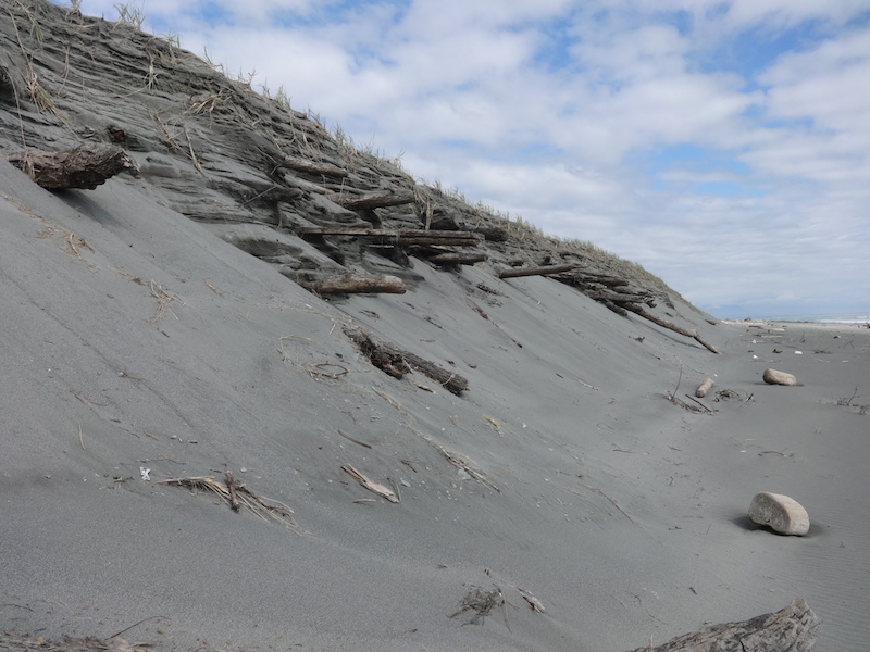 ![]() Logs embedded in sand dunes by storms. South of Alsek River/Dry Bay. |