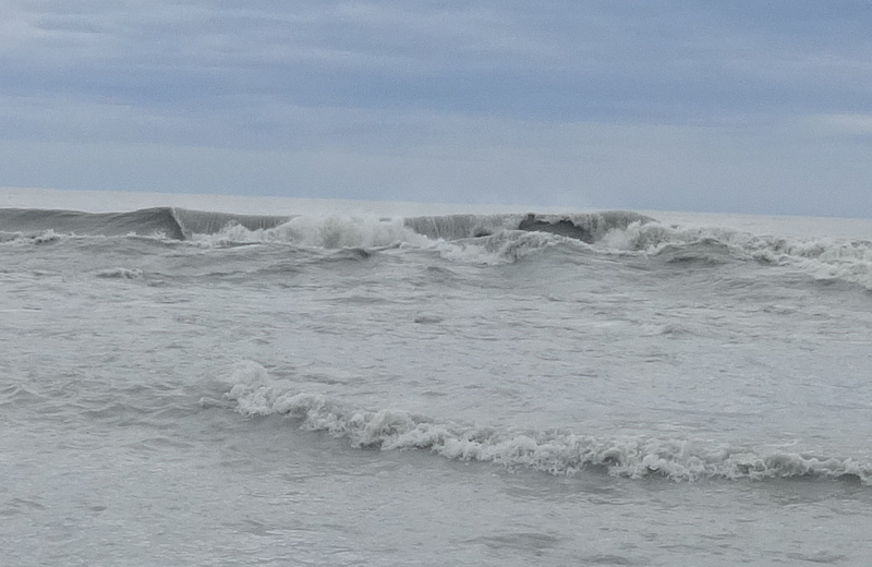 ![]() Icy water meeting 6 foot surf, Fairweather Glacier outflow. |
