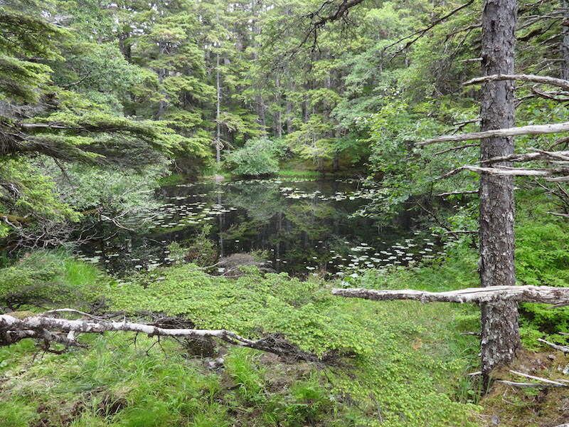 ![]() Pond with lily pads along bear trail above Cape Fairweather. |