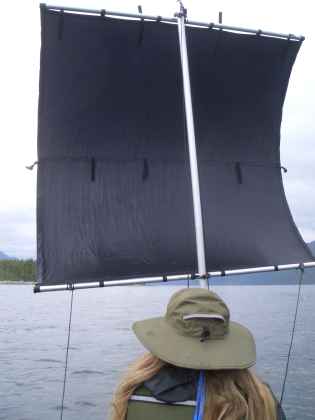 miles Up about 7:30 AM to first raindrops all night, but didn't last long. Still SE breeze. Had breakfast and launched about 10 AM. Passed what appeared to have been good camping area on NW side of Kumealon Island with sand/stone beach. Sailed up remainder of Grenville Channel in 10-15 knot wind and occasional showers. Many fishing boats, especially seiners, all heading south. Crossed channel and considered stopping at beach on McMicking Island, but with favorable current and freshening southerly wind, decided to push on. Went past Genn Island, but no beach there. Continued to sail north, passing a number of gillnetters before arriving at Kitson Island about 6 PM. 2 kayakers on south beach. We landed on east beach. Met Inside Passage kayakers Phil and April. Enjoyed chatting with them after dinner. They started in Gig Harbor May 2, with goal of Glacier Bay. Compared notes and they seemed to enjoy that too. Rain showers ended by late afternoon. Never got out of boat from 10 AM to 6 PM, our longest stretch yet.
