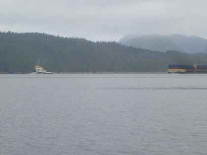 Saw several fishing boats and tug and barge passing to west of Cape Caution.