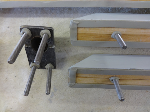 Another part of the hull work was replacing the rudder post. The original one was badly pitted, as tends to happen to stainless steel that's been under water for long periods of time. We went with stainless steel, with stainless steel straps welded to it. The assembly was then coated with epoxy to prevent contact with salt water. Hopefully it will serve as long as the original one did.