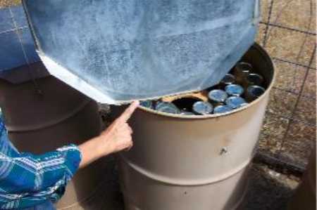 peering out the window, saw a raccoon entering one of the barrels. Obviously,