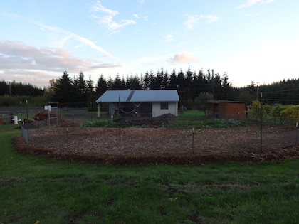 page describes the evolution of our gardening methods in Oregon, beginning with a sprinkler irrigated garden from 2004 to 2014, then converting to deep wood chip mulch from 2014 to the present.