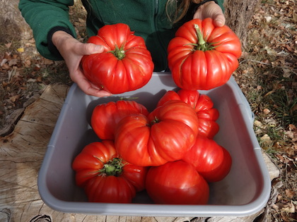 For the 2015 season, we made a radical change to our Oregon garden. Just before leaving Oregon in the fall of 2014, we decided to try deep mulching. In previous gardens we'd tried this using straw, but that led to an explosion of sow bugs which ate just about every plant that emerged from the ground. Nonetheless, having seen several videos on the benefits of deep mulch gardening using wood chips, we decided to give it a try. We put out the word to a local company that trims trees around power lines, as well as among local arborists. We had a convenient place for them to turn around and soon were getting truck loads of chips. We first covered the garden with a 3" layer of composted horse manure, then 8" of chips. When we returned in the spring of 2015, there wasn't a weed to be seen in the garden, a very pleasant first. Working the soil was greatly reduced as it only needed to be done right where we were planting. We just raked back the chips, loosened the top-most layer of soil and planted. Soon, we had another pleasant surprise, which was a major reduction in watering. The plants grew well and there was little weeding to do during the summer. Even in late summer, we could dig down through the mulch to very damp soil, despite having had a typically dry summer. So far, we're pretty well sold on deep wood chip mulch gardening.