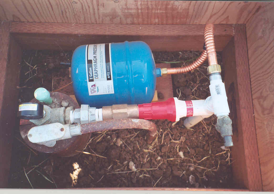 (Above) Cycle stop valve is red and white fitting. Well head is on left. | |||||||||