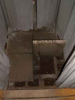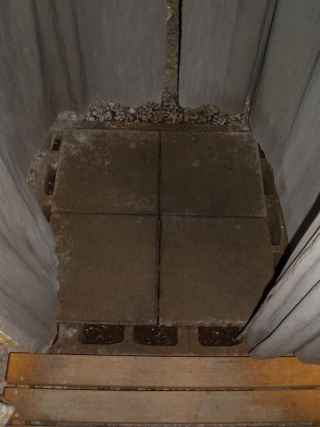 Shower graywater: Our shower in Arizona is outdoors and the one we use in Oregon is semi-outdoors. In both, water for showering is supplied from an elevated 5 gallon bucket equipped with a flexible hose, spray nozzle and valve as described on our Water Use page. In Arizona the shower floor is slatted boards and in Oregon is 16 inch square concrete patio blocks.. The Oregon shower floor is located on top of 8x8x16 inch concrete blocks buried in the ground with the tops even with the soil surface. The blocks are installed with the cores vertical and the cores are filled with compost. The function of the blocks is to provide a sturdy base for the shower floor and to contain the compost. The function of the compost is to promote good drainage by filtering out soap, hair and other impurities before they reach the native soil. In use, shower wastewater passes through the slatted floor or between the patio blocks and then through the compost and into the native soil. To prevent the compost from eventually plugging with soap scum, etc., it is replaced once or twice each year. As with our Arizona mulch basin system, this one works well because of the limited amount of water that needs to be processed.