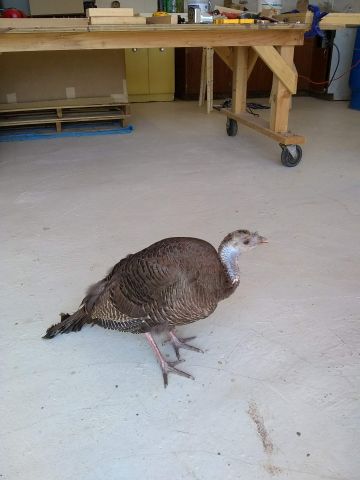 ![]() Thelma, our new supervisor. She's a wild turkey that was raised by a neighbor and has been hanging out in the shop the past week. |