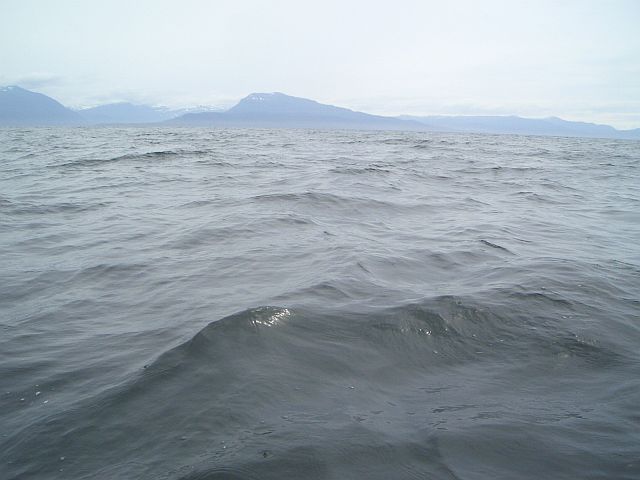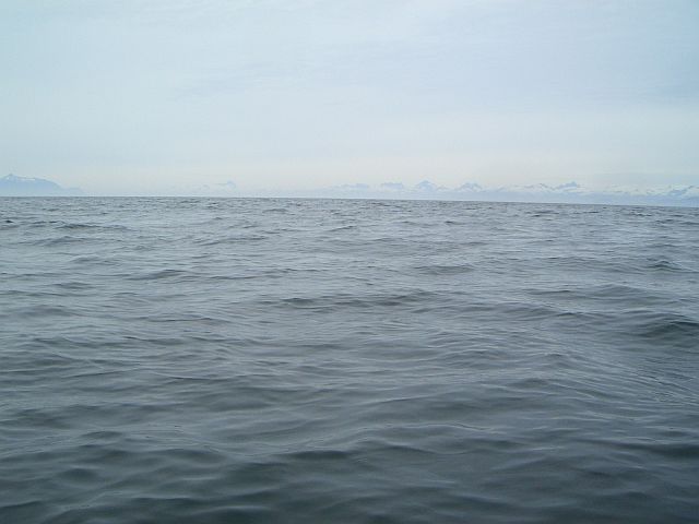 Halfway across Frederick Sound with Baranof Island mountains on horizon
