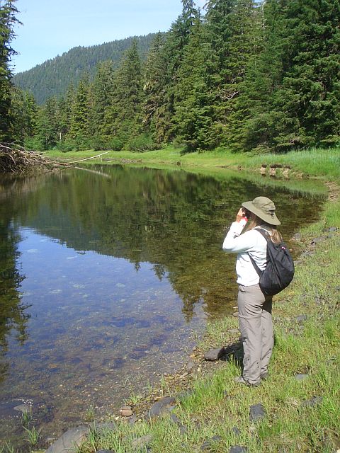 Searching stream for bears and salmon (Herring Bay, Admiralty Island)