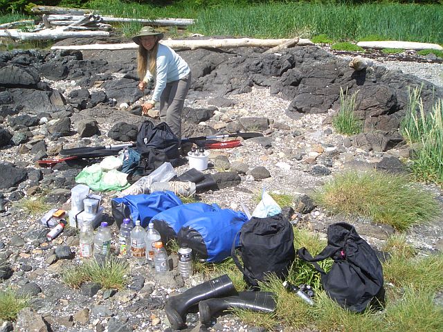 Schlepping gear at Herring Bay camp on Admiralty Island