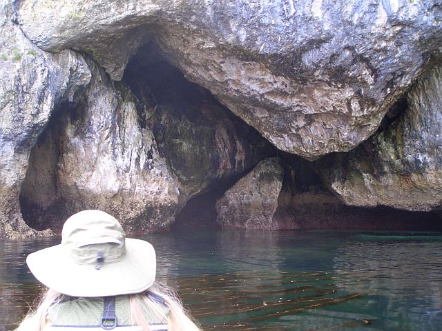 Sea cave with cormorant rookery in cave roof
