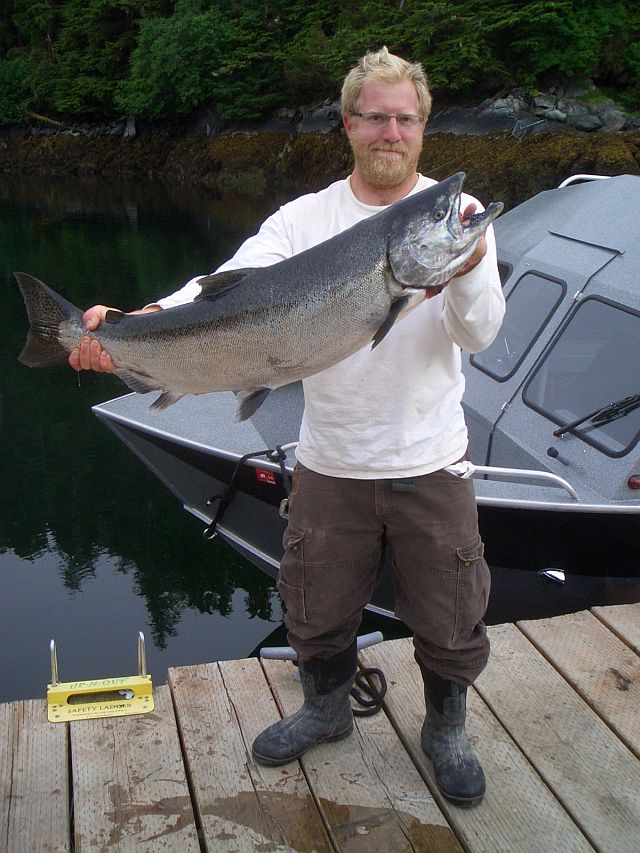 Nice salmon caught by hatchery worker (Kasnyku Bay, Baranof Island)