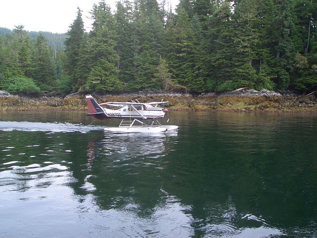 Float plane takes off with Mitch to look for salmon (Kasnyku Bay, Baranof Island)