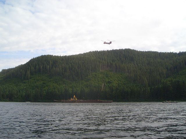 Helicopter logging on Native land (north shore, Catherine Island)