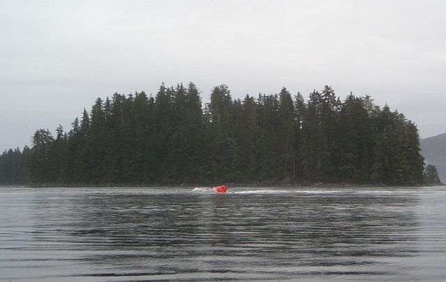 Buoy pulled over by current as we enter Sergius Narrows in Peril Strait