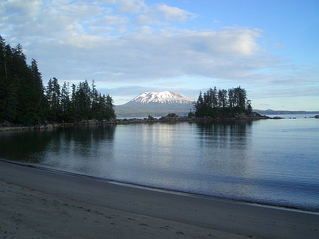 View from camp toward Mt. Edgecumbe (north side of Shelikof Bay, outer coast of Kruzof Island)