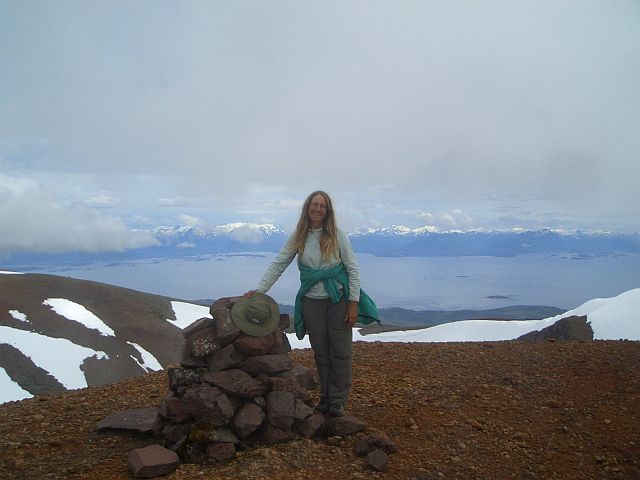Summit of Mt. Edgecumbe. Snow-covered Fairweather Range visible on horizon, 150 miles away.