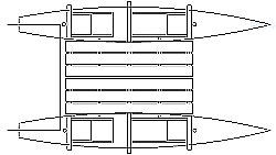 simple. We wanted our next boat to be: She's an open deck design, 23' 9" long with a 13' 4" beam, which is about as small as one can go in an ocean-crossing multihull with enough weight-carrying capacity for a crew of two. Her carrying capacity is around 1200 pounds, which is what we figure for ourselves, gear and provisions for 4 to 6 weeks at sea. Her hulls are dory