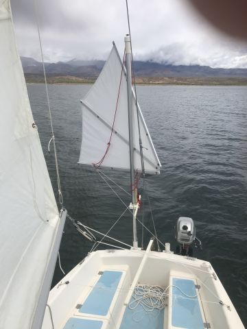 ![]() Our Windrose 18 (5.5m) swing keel monohull with self steering mizzen. |