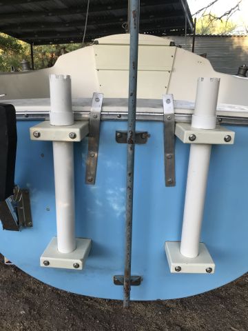 ![]() We used two mast sockets to give more flexibility on courses where the back stay might interfere with the mizzen sail. On most points of sail, or on boats without a backstay, it isn't necessary to have 2 sockets. |